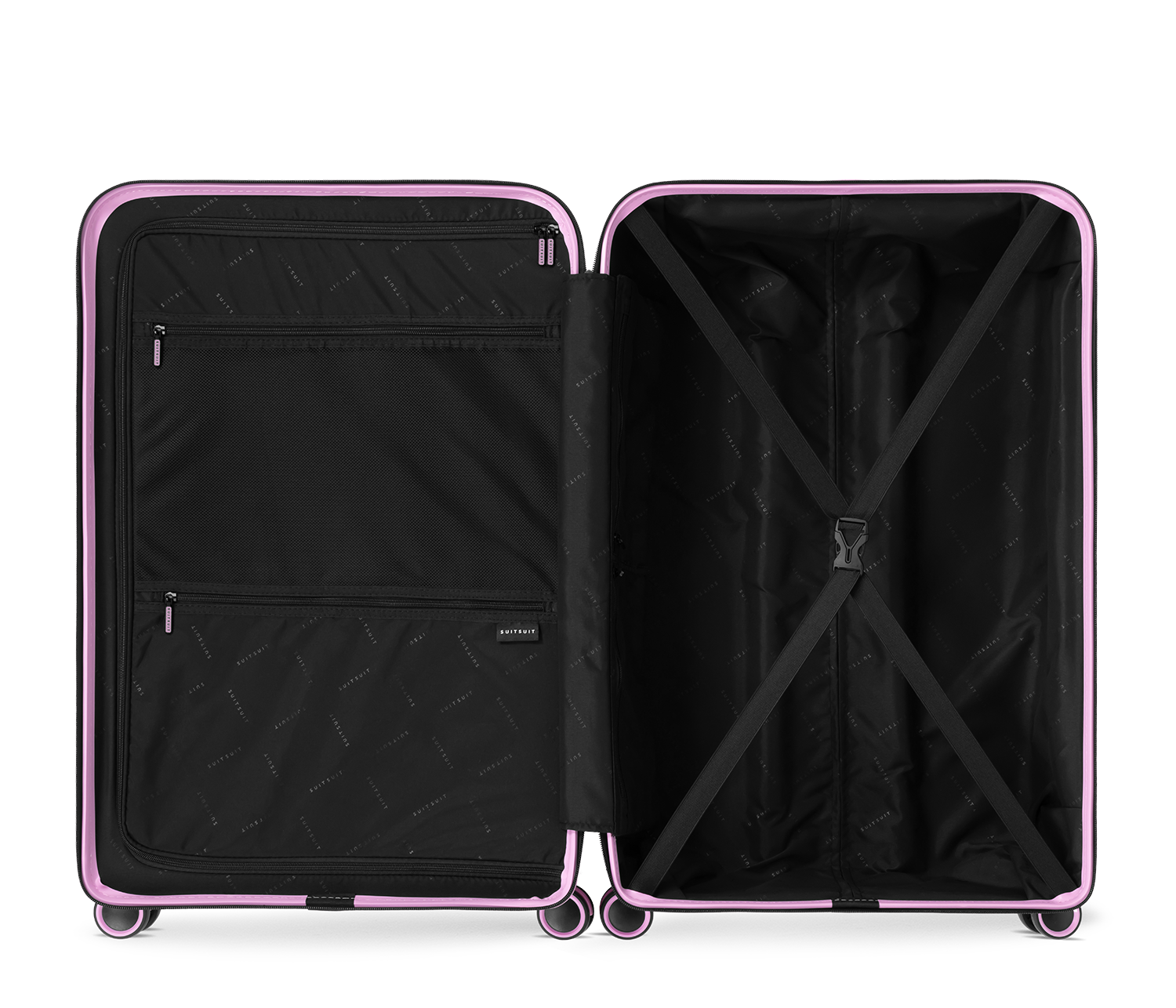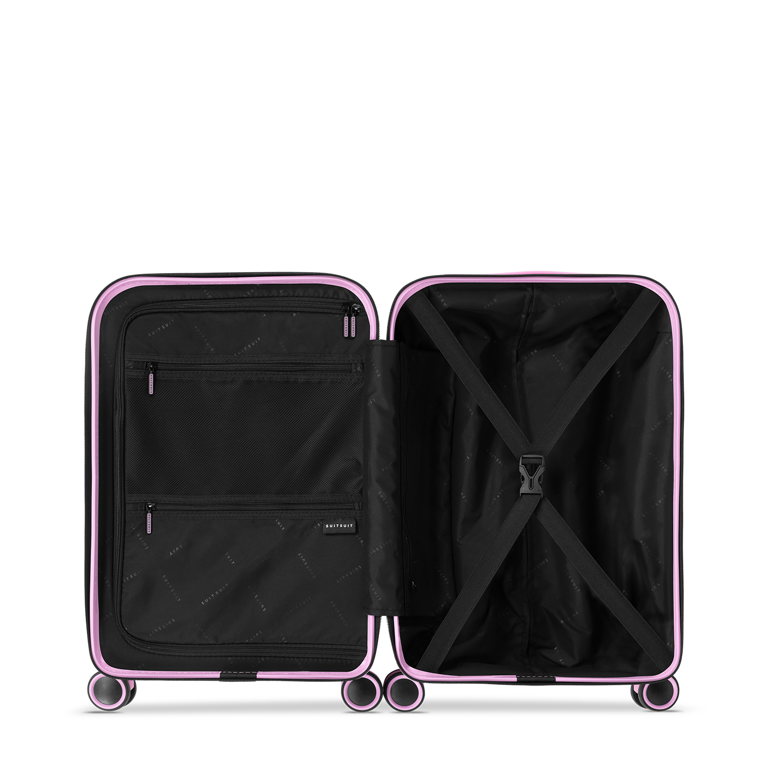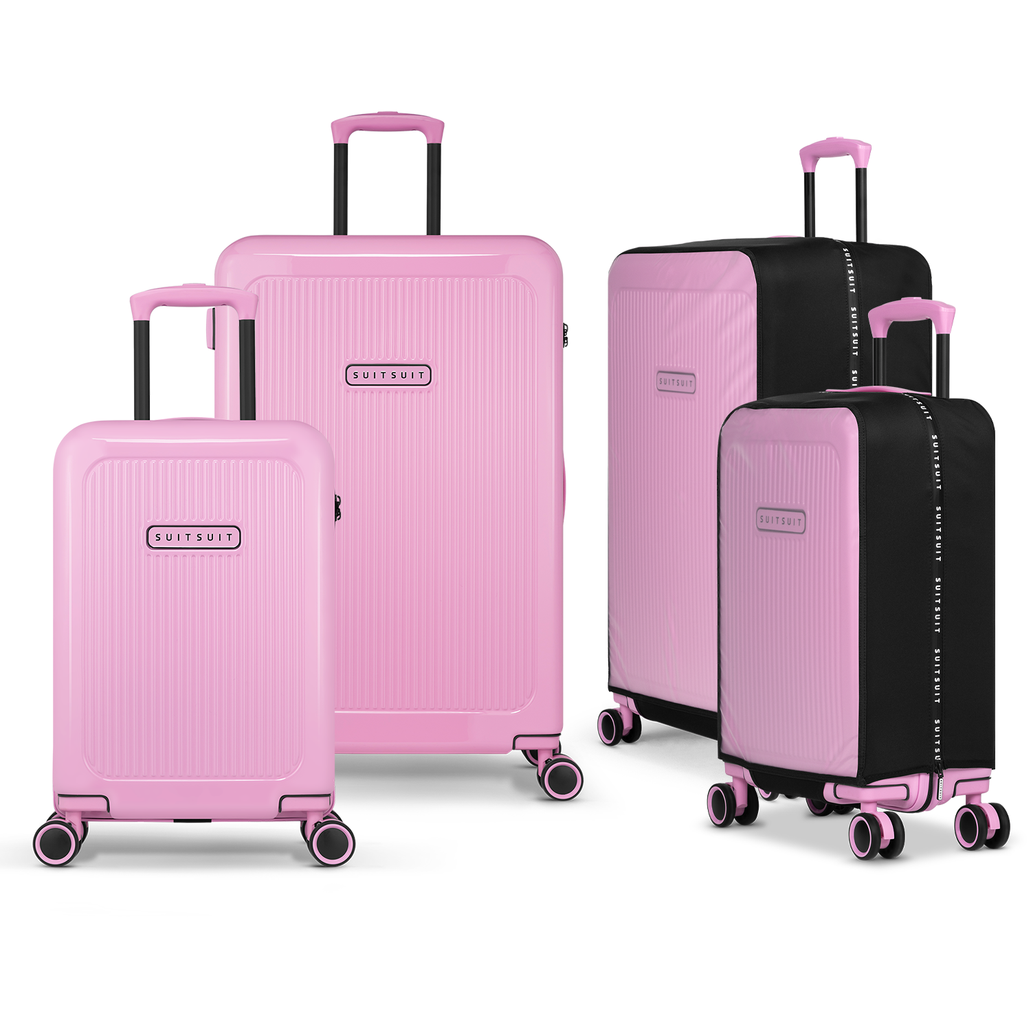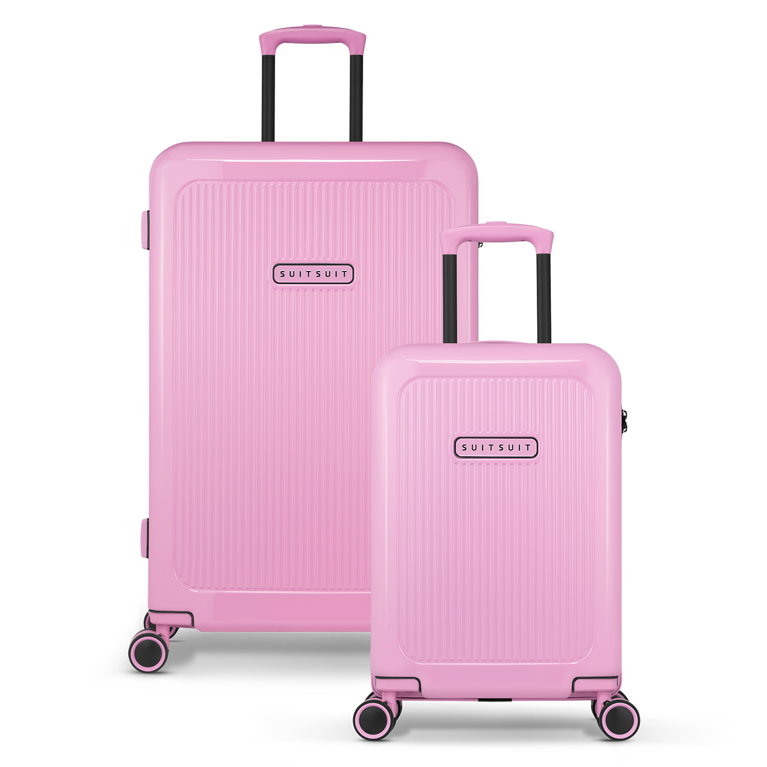 - This set includes the Fondant Pink check-in suitcase (76 CM), the Fondant Pink carry-on suitcase (55 CM), and two Expression protection covers (55 CM and 76 CM).