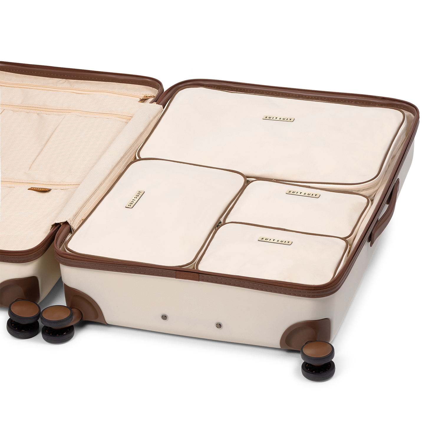 - This set includes the Antique White check-in suitcase (76 CM) and the Antique White packing cube set (76 CM).