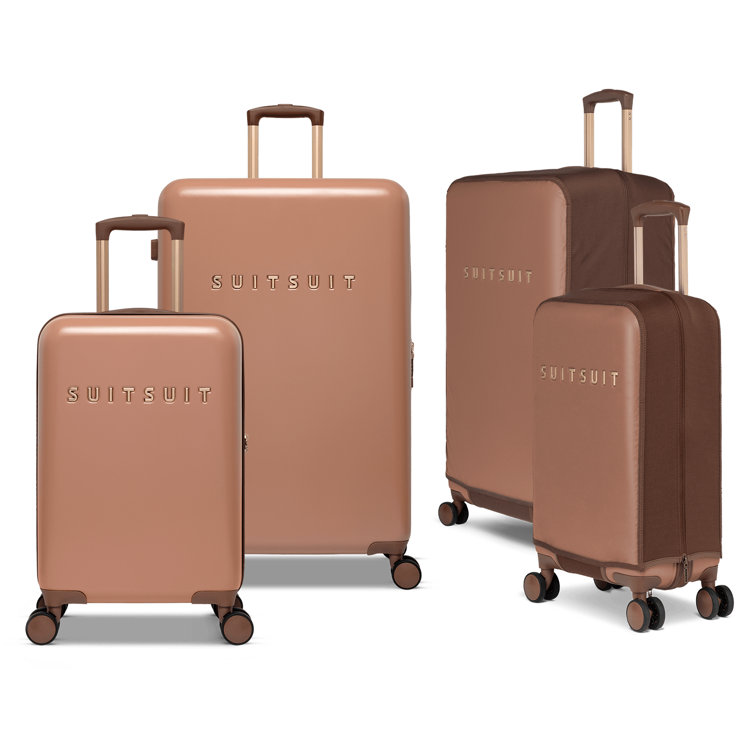 - This set includes the Italian Clay suitcase (76 CM), the Italian Clay carry-on suitcase (55 CM), and two Burned Caramel protection covers (55 CM and 76 CM)