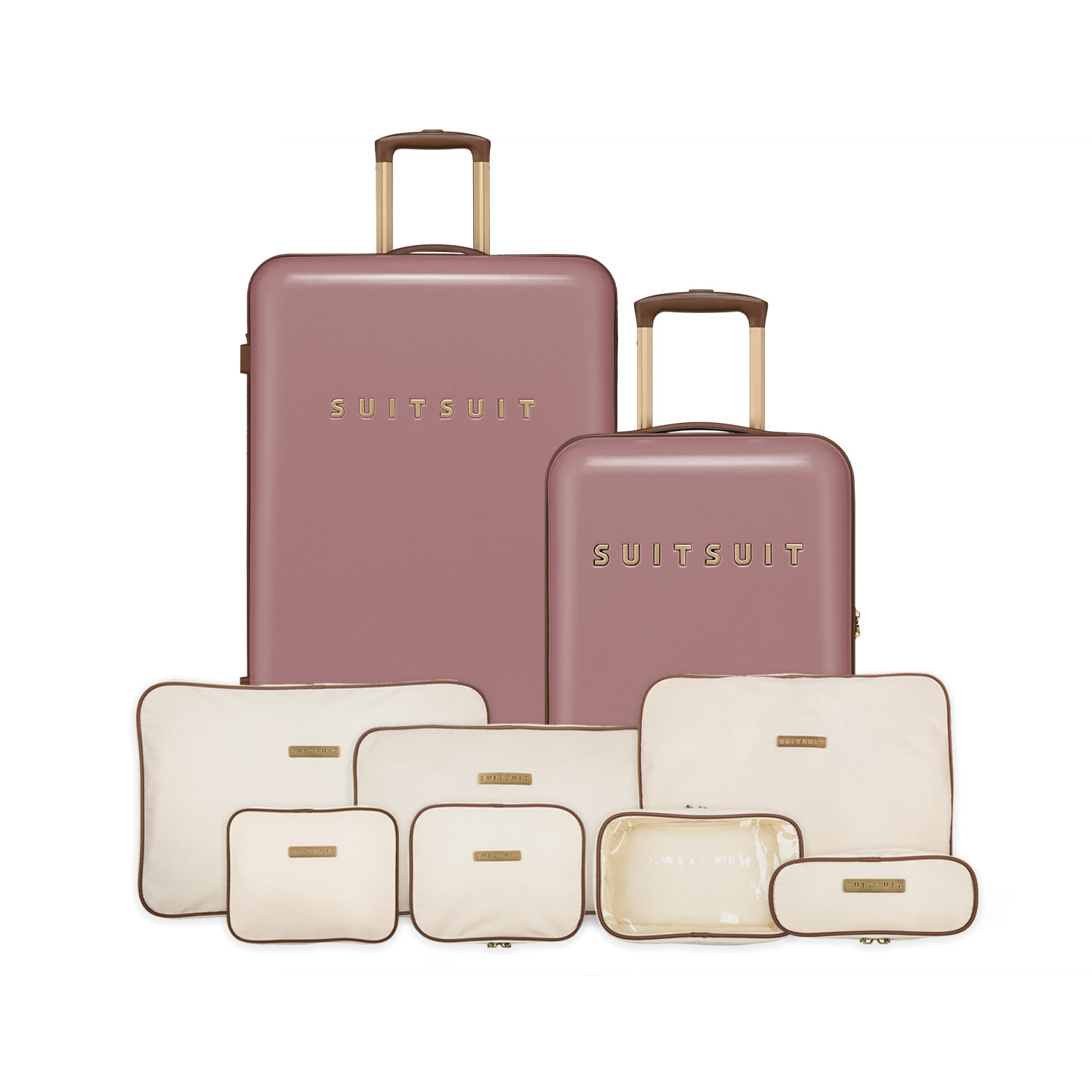 - This set includes the Old Rose suitcase (76 CM), the Old Rose carry-on suitcase (55 CM), and two Antique White packing cube sets (55 CM and 76 CM).