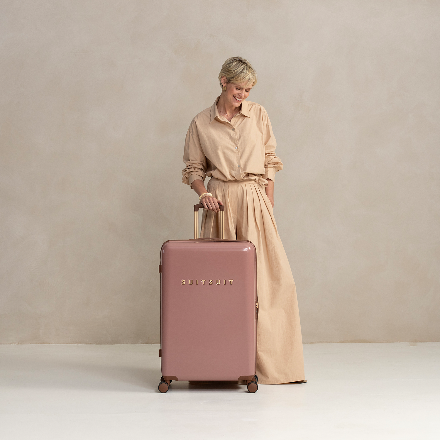 - This set contains the Old Rose check-in suitcase (76 CM) and the Burned Caramel protection cover (76 CM).
