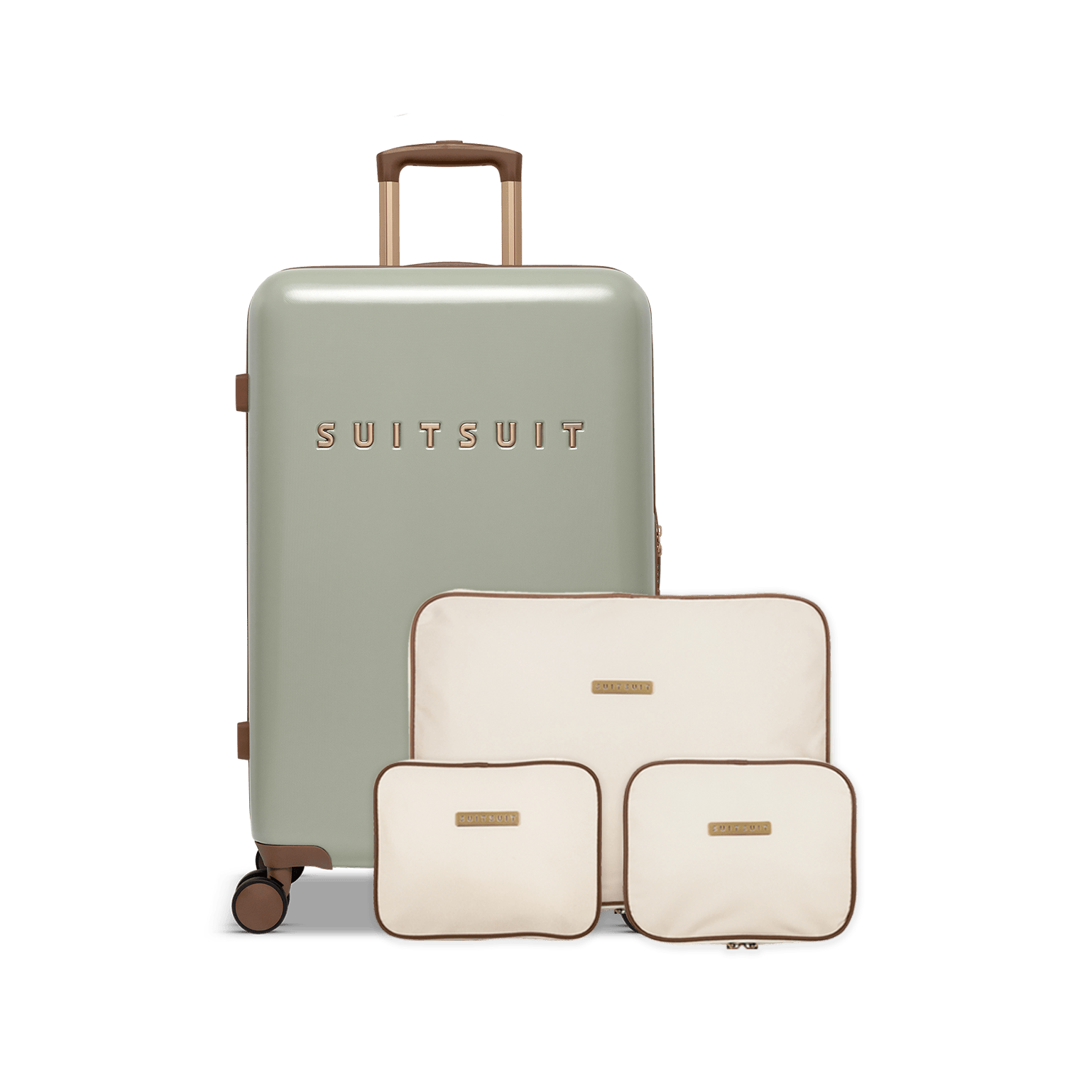 • This set contains the Sustained Grey check-in suitcase (66 CM) and the Antique White packing cube set (66 CM).