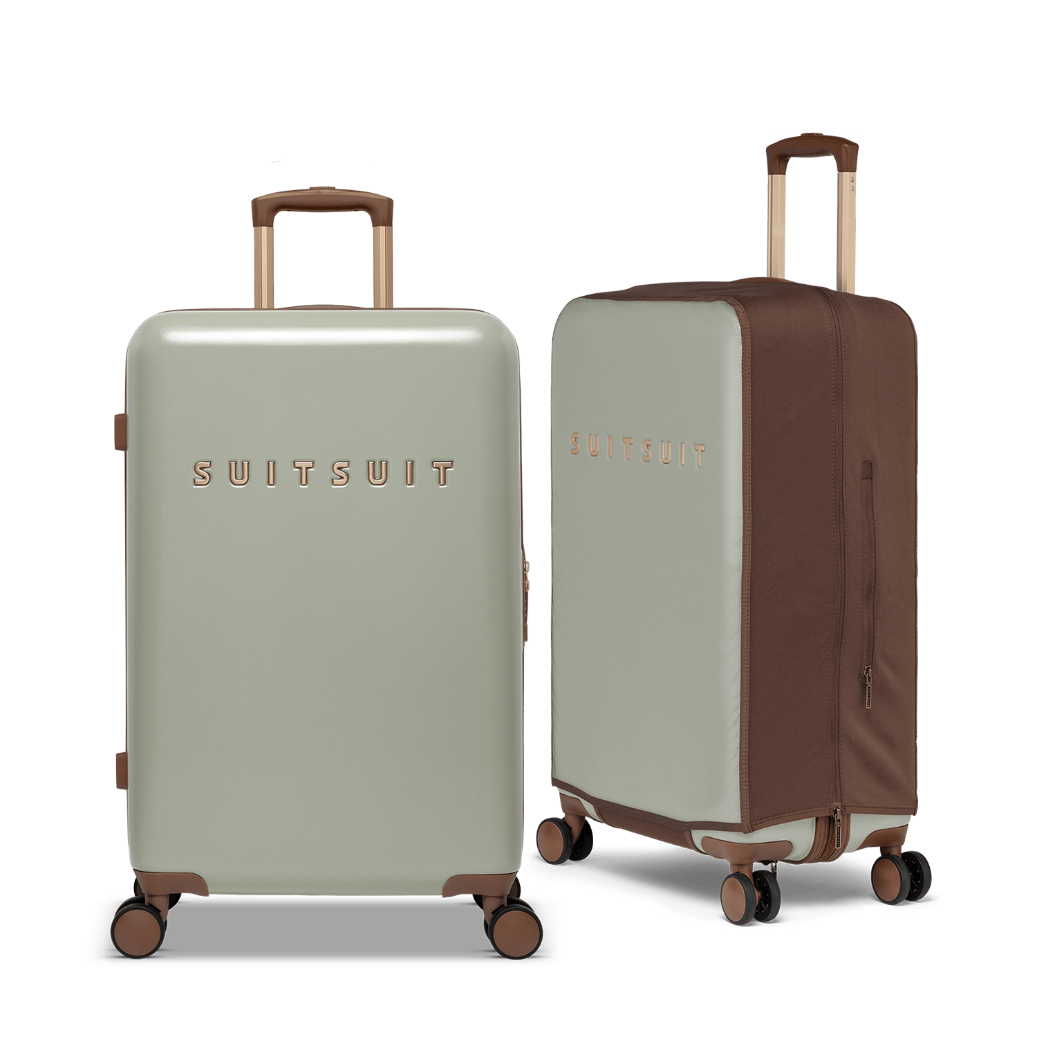 - This set contains the Sustained Grey check-in suitcase (66 CM) and the Burned Caramel protection cover (66 CM).