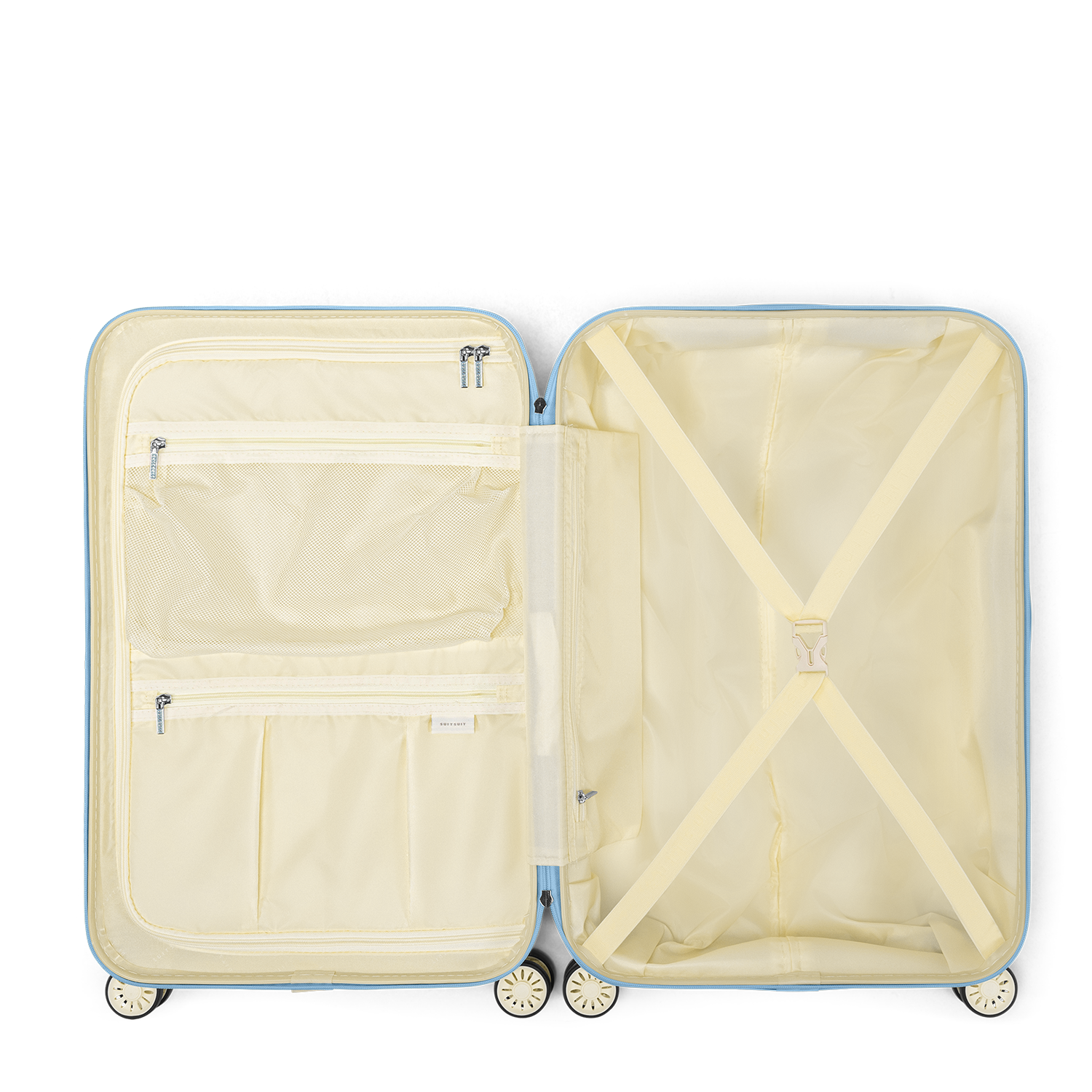 - This set contains the Chambray Blue check-in suitcase (66 CM) and the Chambray Blue packing cube set (66 CM).