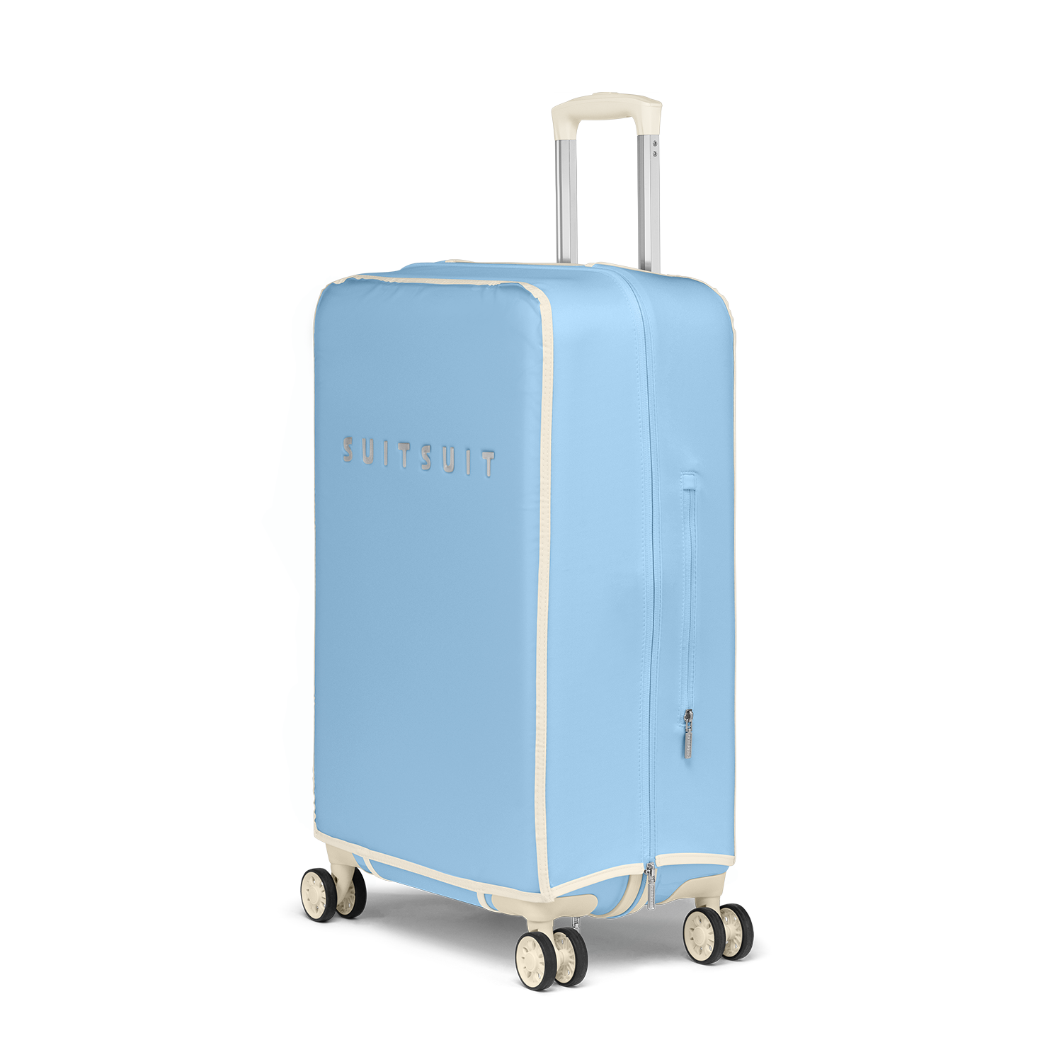 The Fabulous Fifties protective cover is the perfect solution for maintaining a clean and scratch-free check-in suitcase. With this extra protective layer, you make sure your SUITSUIT suitcase remains beautiful. The front and back of the cover are matte transparent PVC, so the colour of your Fabulous Fifties suitcase will still be visible. The Chambray Blue colour can be found on the top and sides of the protective cover.