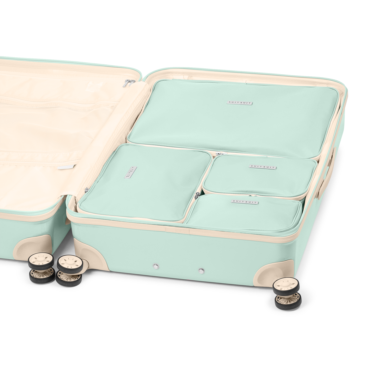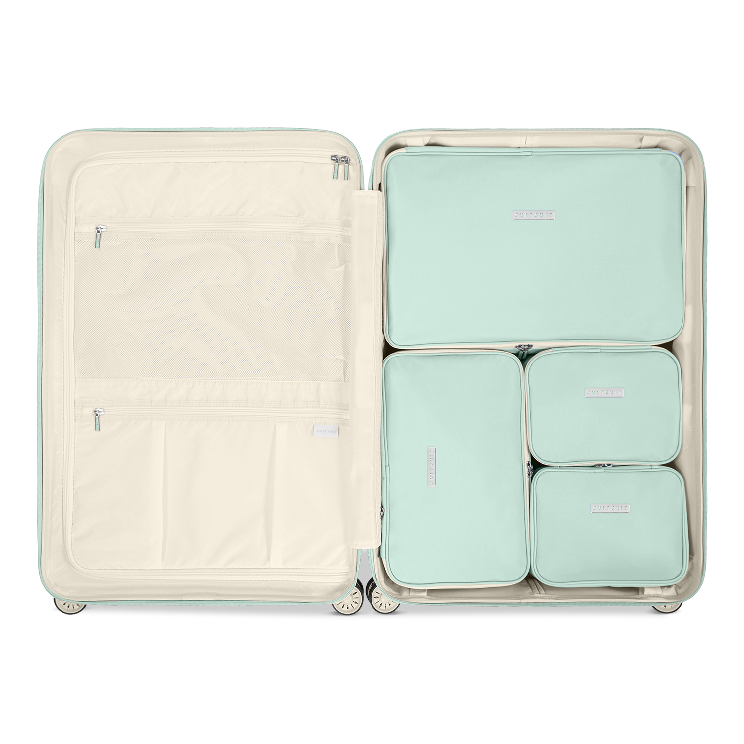 - This set contains the Luminous Mint check-in suitcase (76 CM) and the Luminous Mint packing cube set (76 CM).