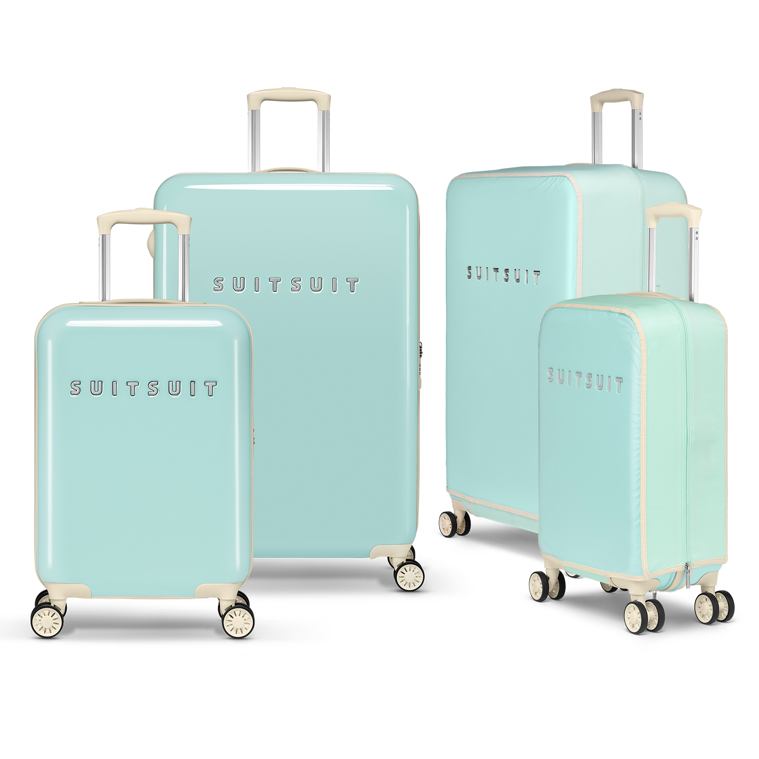 - This set includes the Luminous Mint check-in suitcase (76 CM), the Luminous Mint carry-on suitcase (55 CM), and two Luminous Mint protection covers (55 CM and 76 CM).
