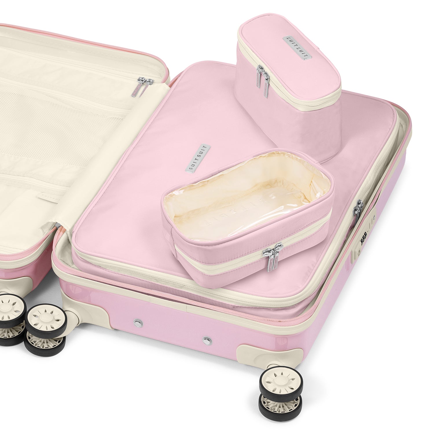 - This set contains the Pink Dust carry-on suitcase (55 CM) and the Pink Dust packing cube set (55 CM).