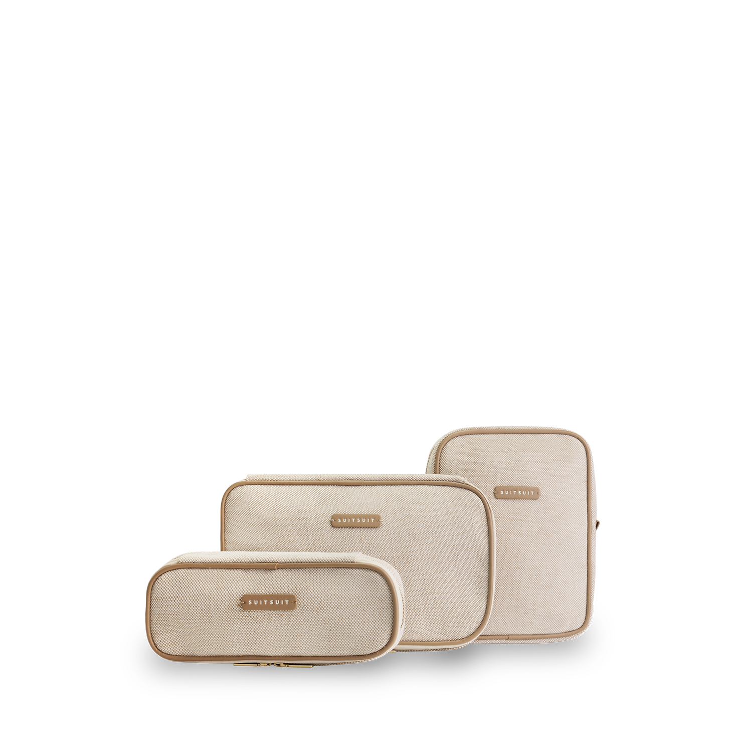 - The packing cube set includes: a clothing organiser, a toiletry bag and a small accessory bag.
