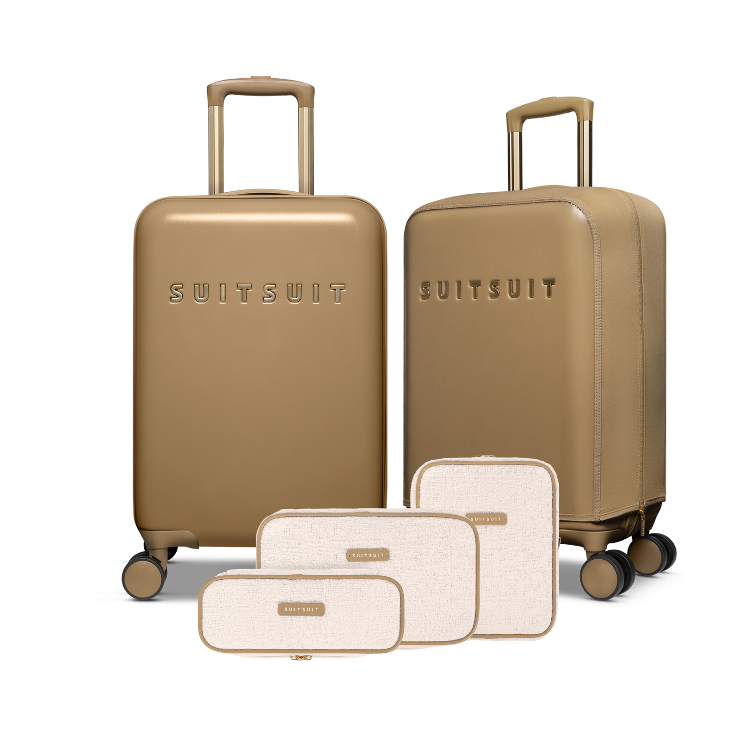 - This set includes the Iced Coffee carry-on suitcase (55 CM), the Iced Coffee protection cover (55 CM), and the Sloppy Cotton packing cube set (55 CM).