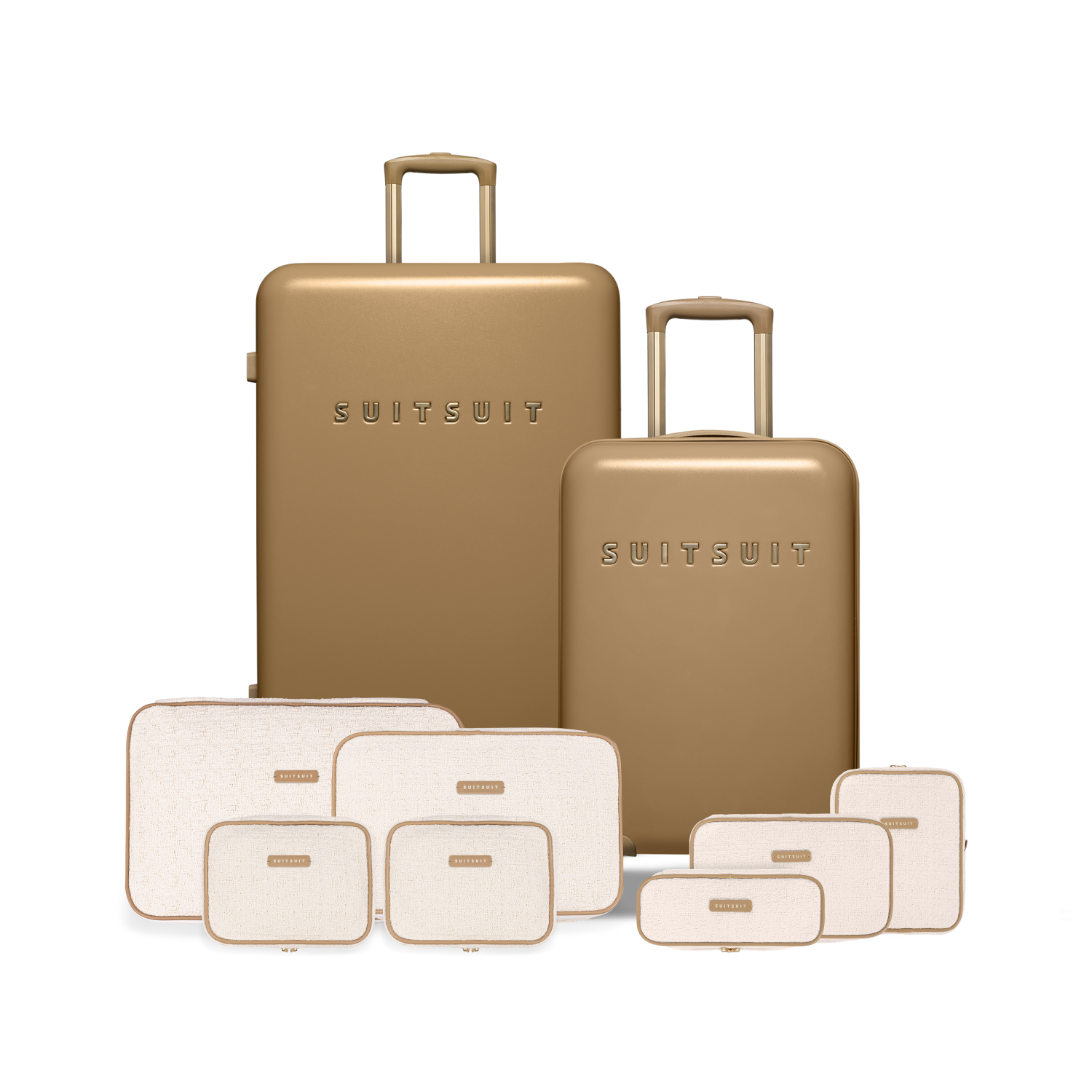 - This set includes the Iced Coffee suitcase (76 cm), the Iced Coffee carry-on suitcase (55 CM), and two Sloppy Cotton packing cube sets (55 CM and 76 CM).
