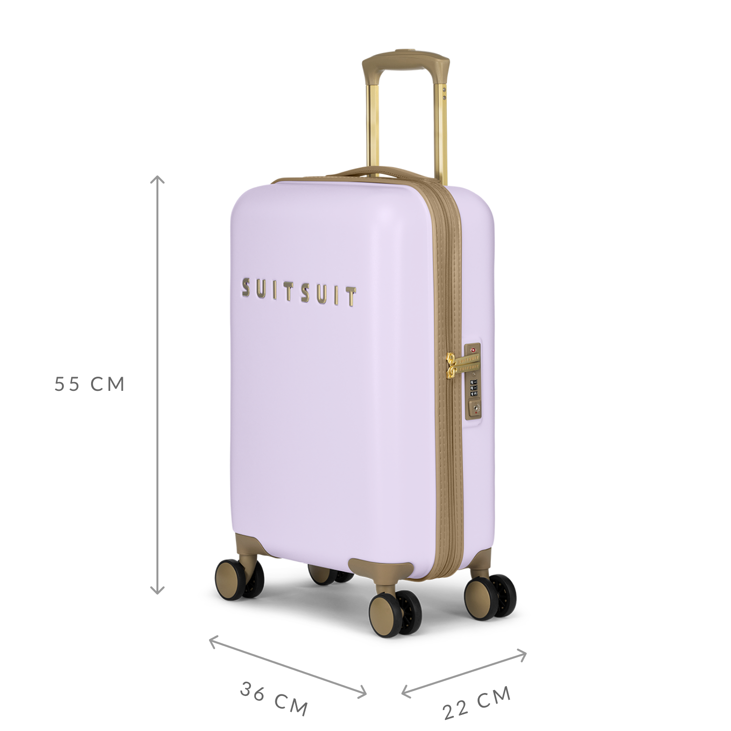 - The 55 CM suitcase meets the IATA requirements and is perfect to take with you as a carry-on on the plane. Tip: check the airline company's website to see if your suitcase meets the requirements.