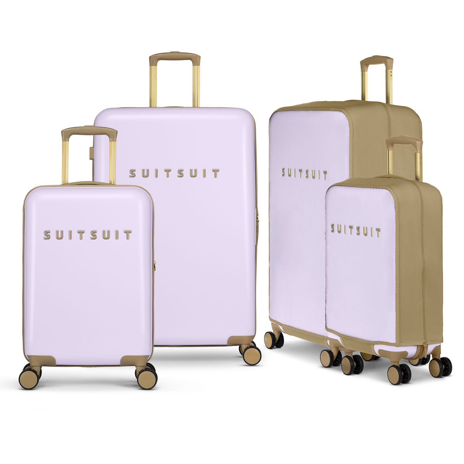 - This set includes the Orchid Bloom suitcase (76 CM), the Orchid Bloom carry-on suitcase (55 CM), and two Iced Coffee protection covers (55 CM and 76 CM).