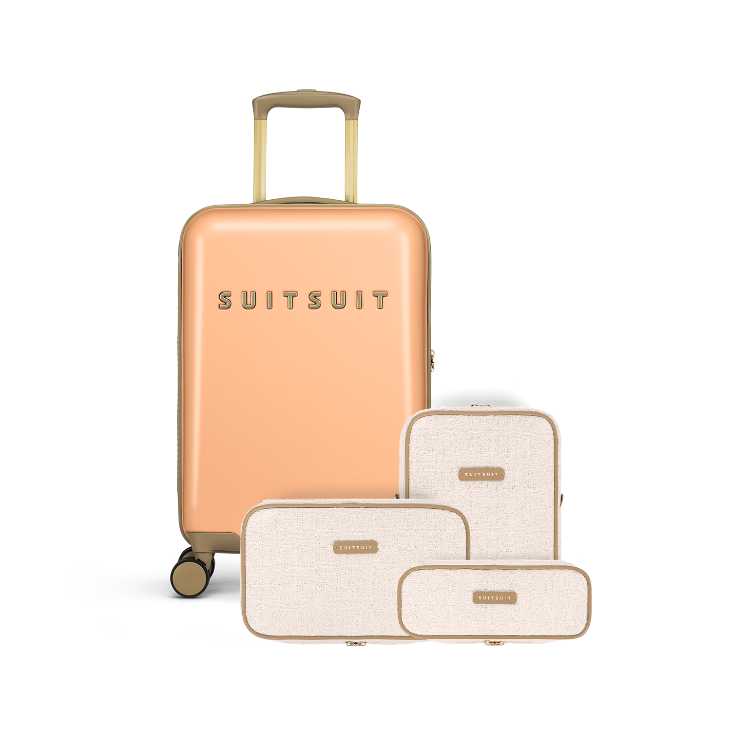 - This set includes the Pale Orange carry-on suitcase (55 CM) and the Sloppy Cotton packing cube set (55 CM).