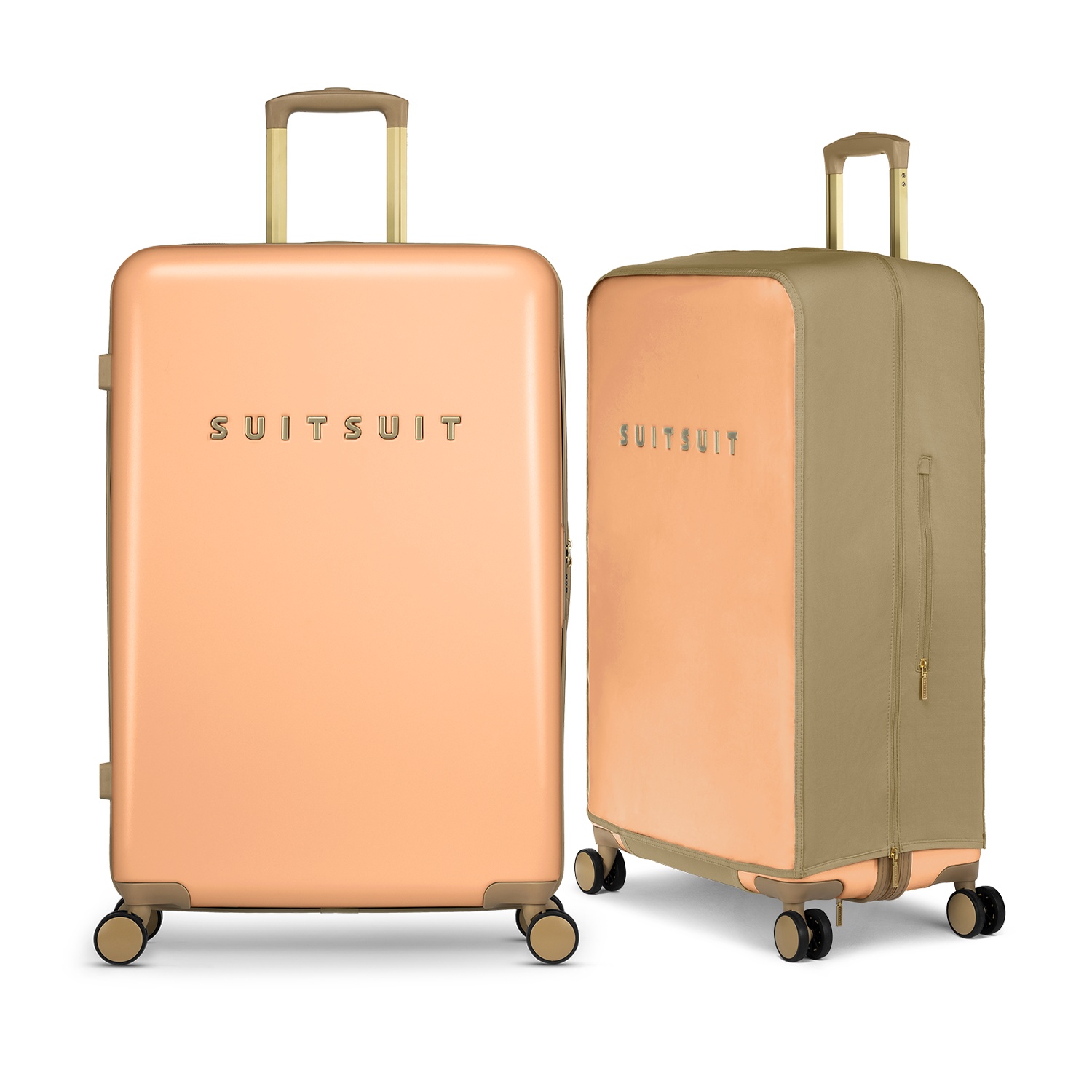 - This set contains the Pale Orange check-in suitcase (76 CM) and the Iced Coffee protection cover (76 CM).
