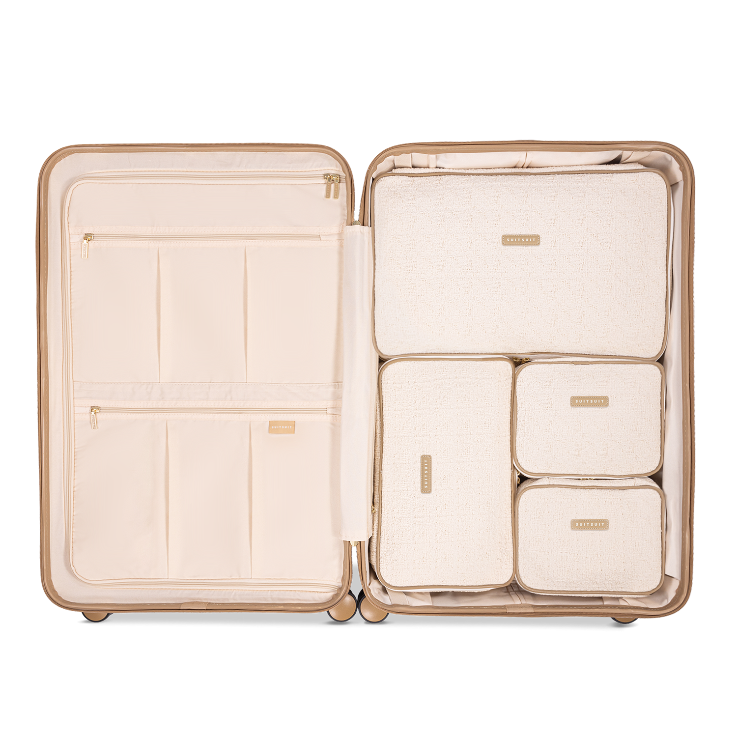 Explore, connect, and get inspired with the Fusion collection. This Fusion packing cube set is specially put together for our large (28 inch) suitcases. The set consists of four different types of organisers that fit into your suitcase. The set fits together seamlessly to make optimal use of all the space in your suitcase.