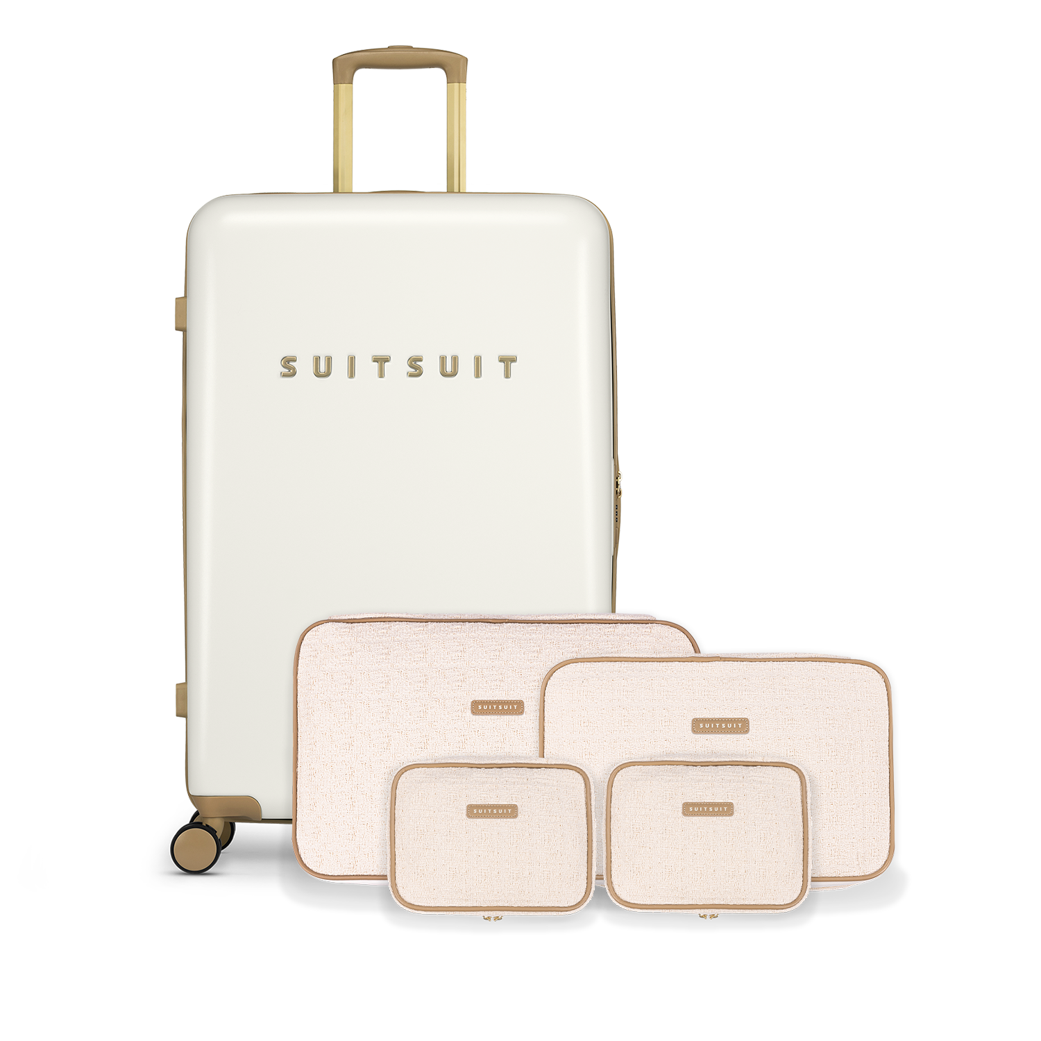 - This set includes the White Swan check-in suitcase (76 CM) and the Sloppy Cotton packing cube set (76 CM).