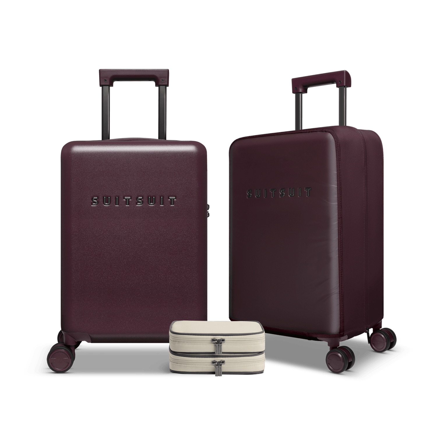 - This set contains the Cherry Lacquer carry-on suitcase (55 CM), the Cherry Lacquer protection cover (55 CM) and the Faded Sand packing cube set (55 CM).
