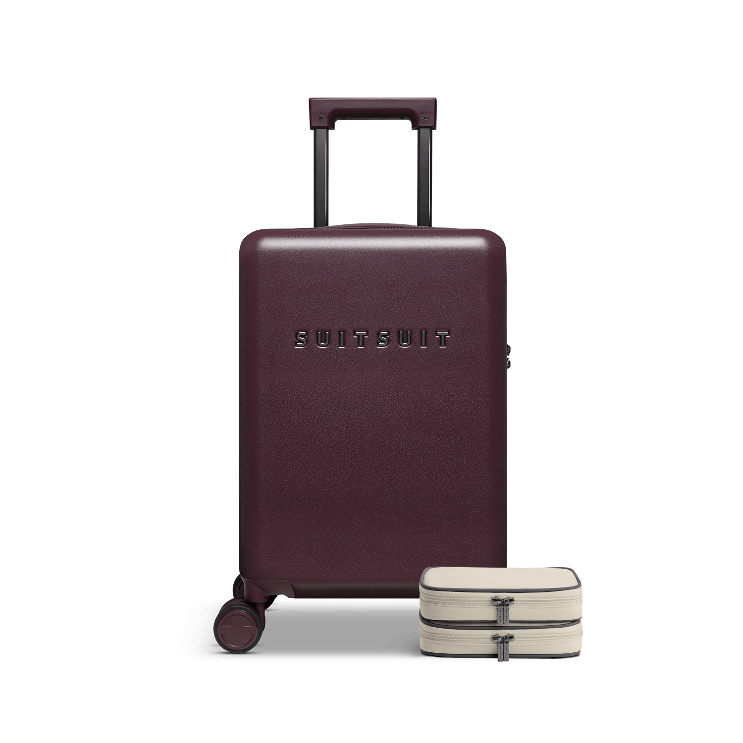 - This set contains the Cherry Lacquer carry-on suitcase (55 CM) and the Faded Sand packing cube set (55 CM).