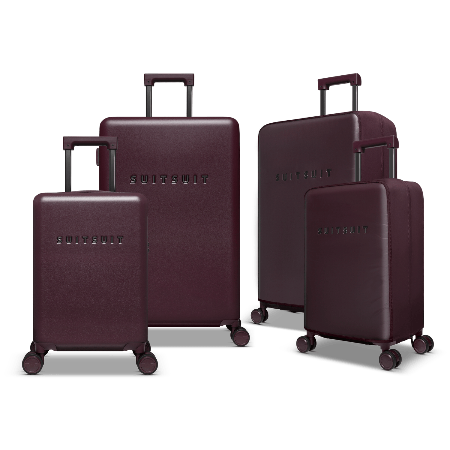 - This set includes the Cherry Lacquer suitcase (76 CM), the Cherry Lacquer carry-on suitcase (55 CM), and two Cherry Lacquer protection covers (55 CM and 76 CM).
