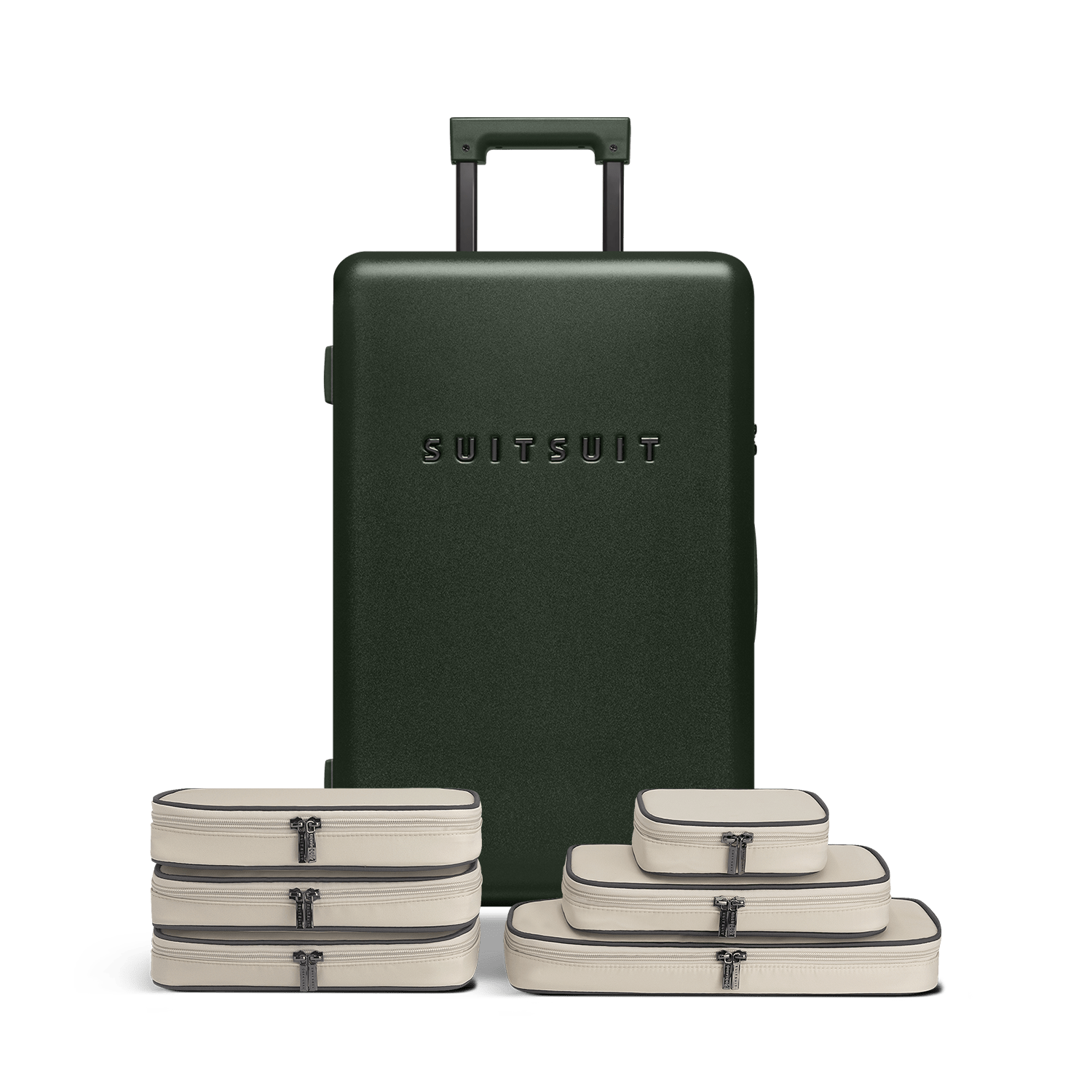 - This set contains the Dark Olive check-in suitcase (66 CM) and the Faded Sand packing cube set (66 CM).