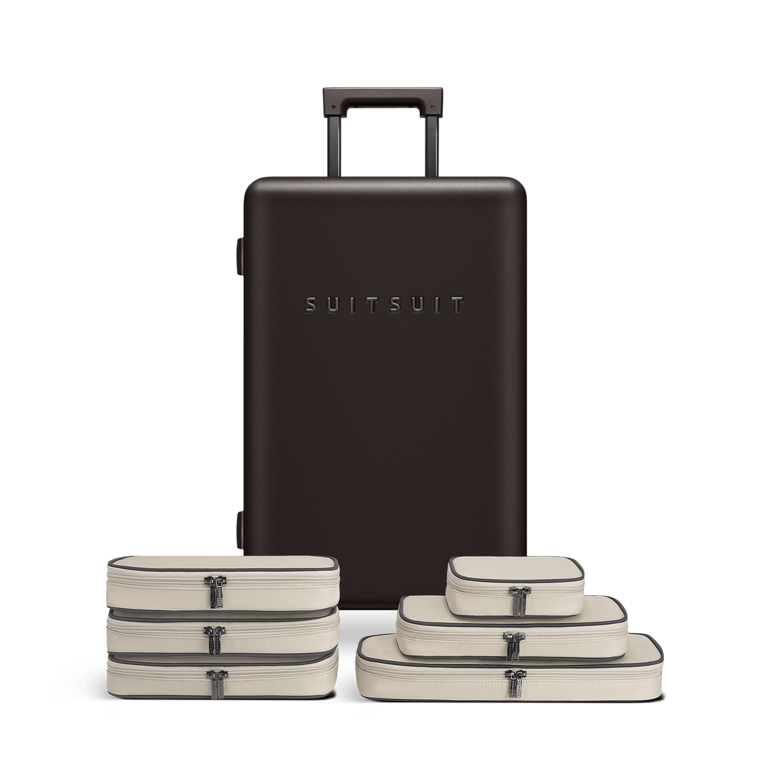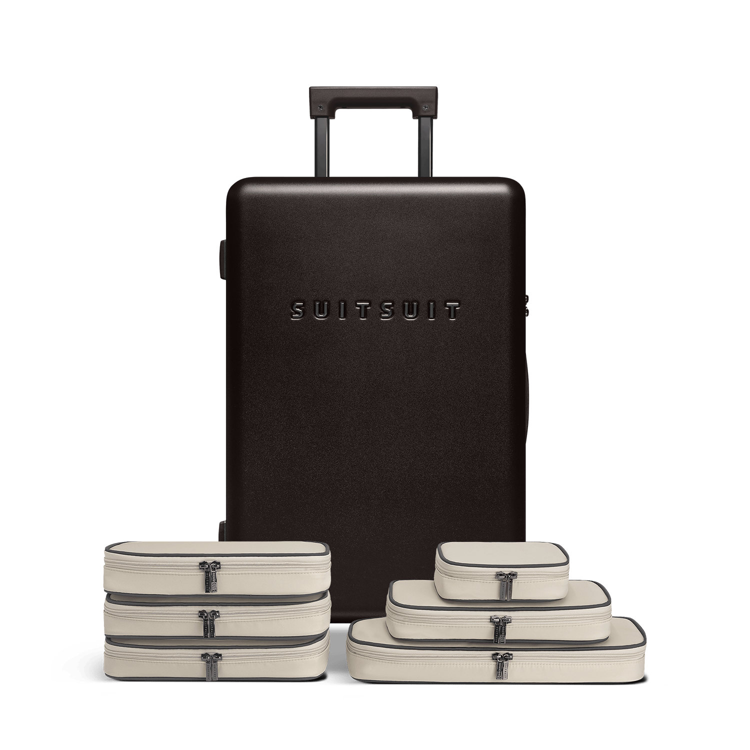 - This set contains the Ground Coffee check-in suitcase (66 CM) and the Faded Sand packing cube set (66 CM).