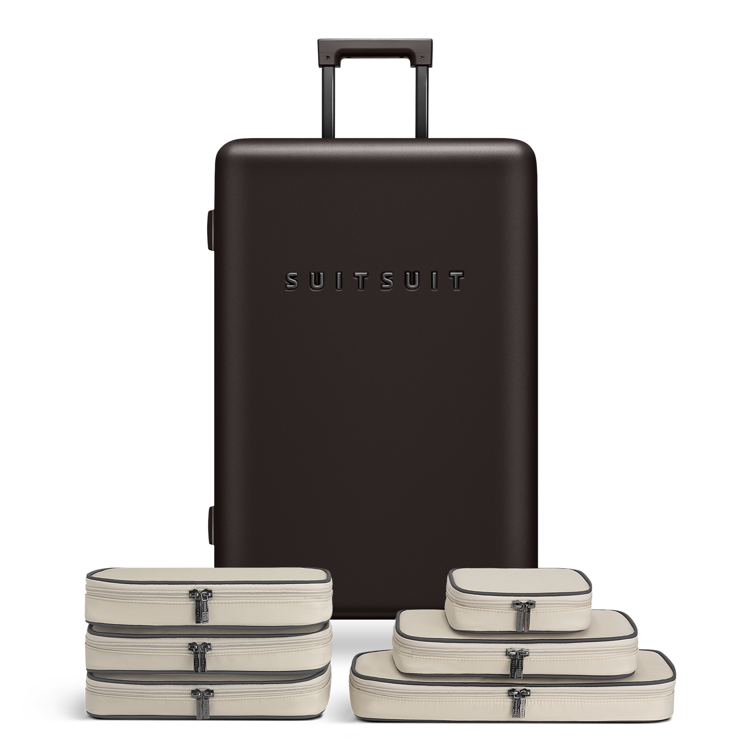 • This set contains the Ground Coffee check-in suitcase (76 CM) and the Faded Sand packing cube set (76 CM).
