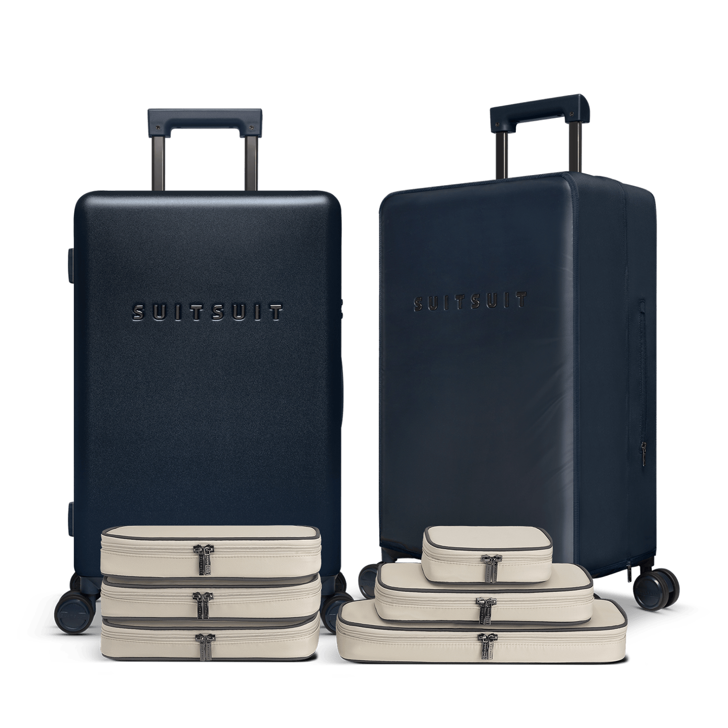 - This set contains the Midnight Blue check-in suitcase (66 CM), the Midnight Blue protection cover (66 CM) and the Faded Sand packing cube set (66 CM).