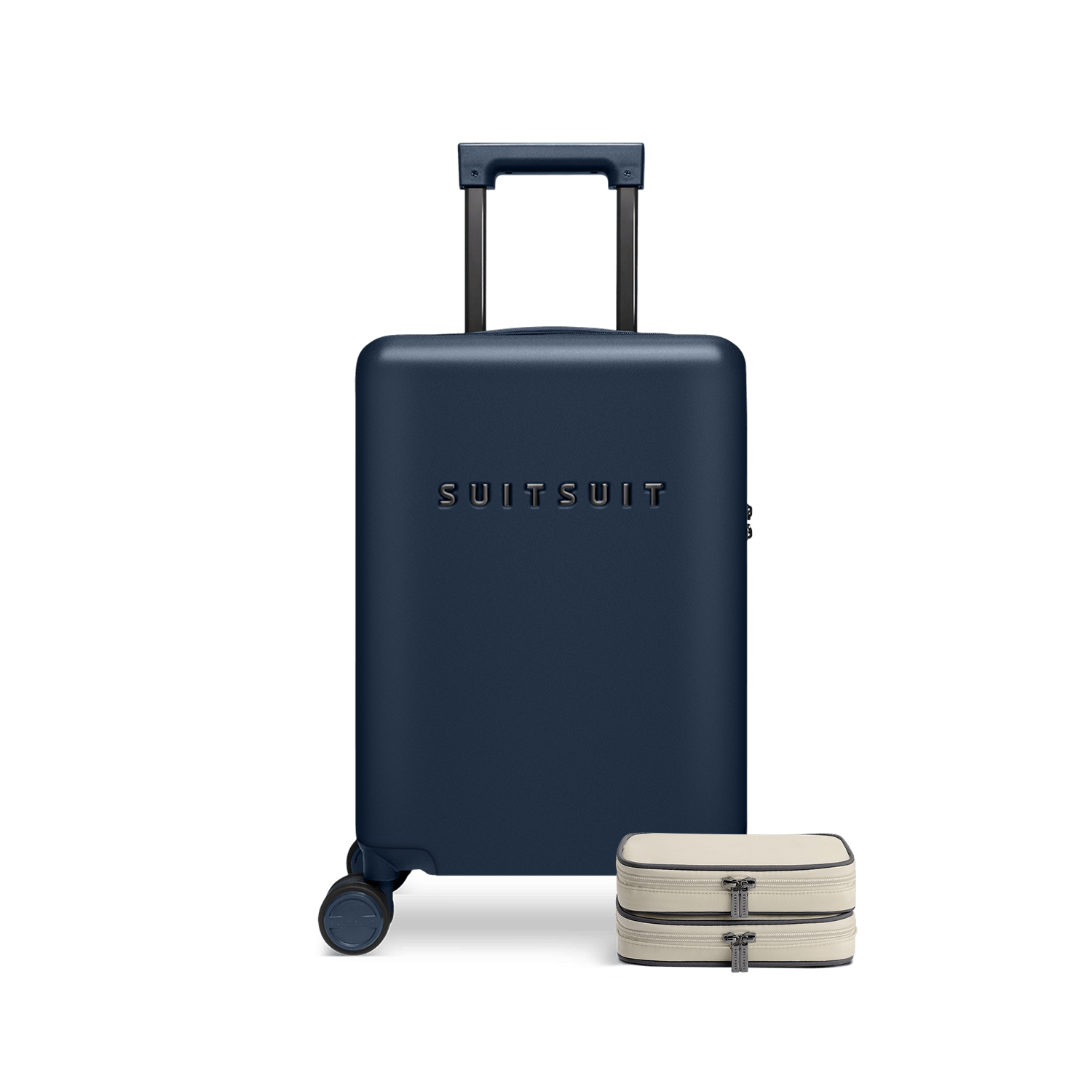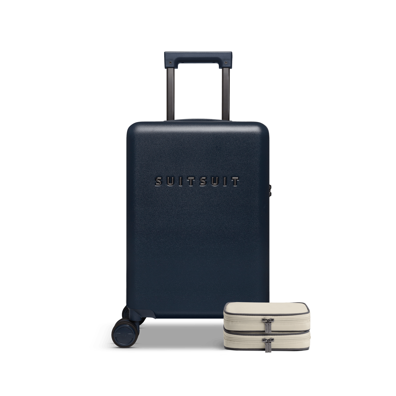- This set contains the Midnight Blue carry-on suitcase (55 CM) and the Faded Sand packing cube set (55 CM).