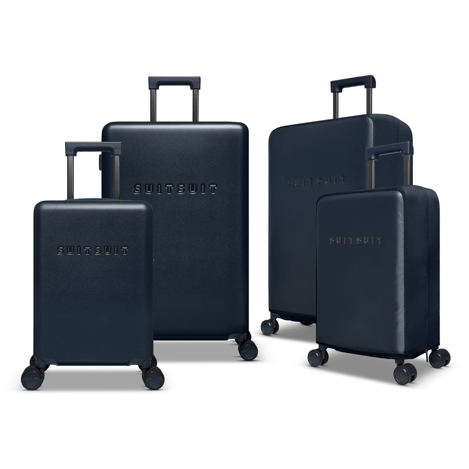 - This set includes the Midnight Blue suitcase (76 CM), the Midnight Blue carry-on suitcase (55 CM), and two Midnight Blue protection covers (55 CM and 76 CM).