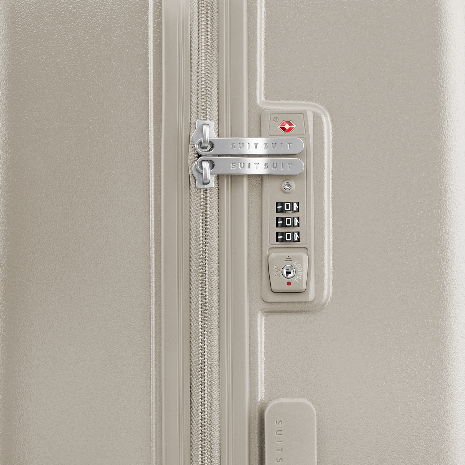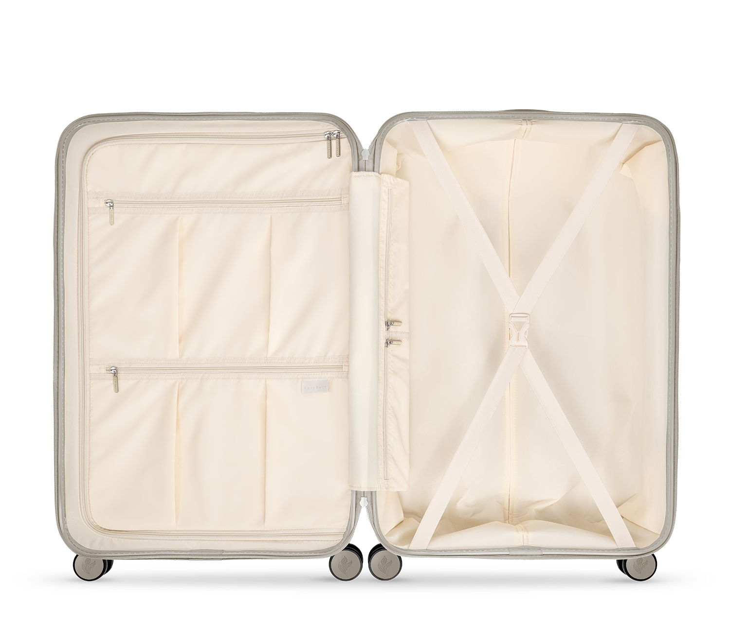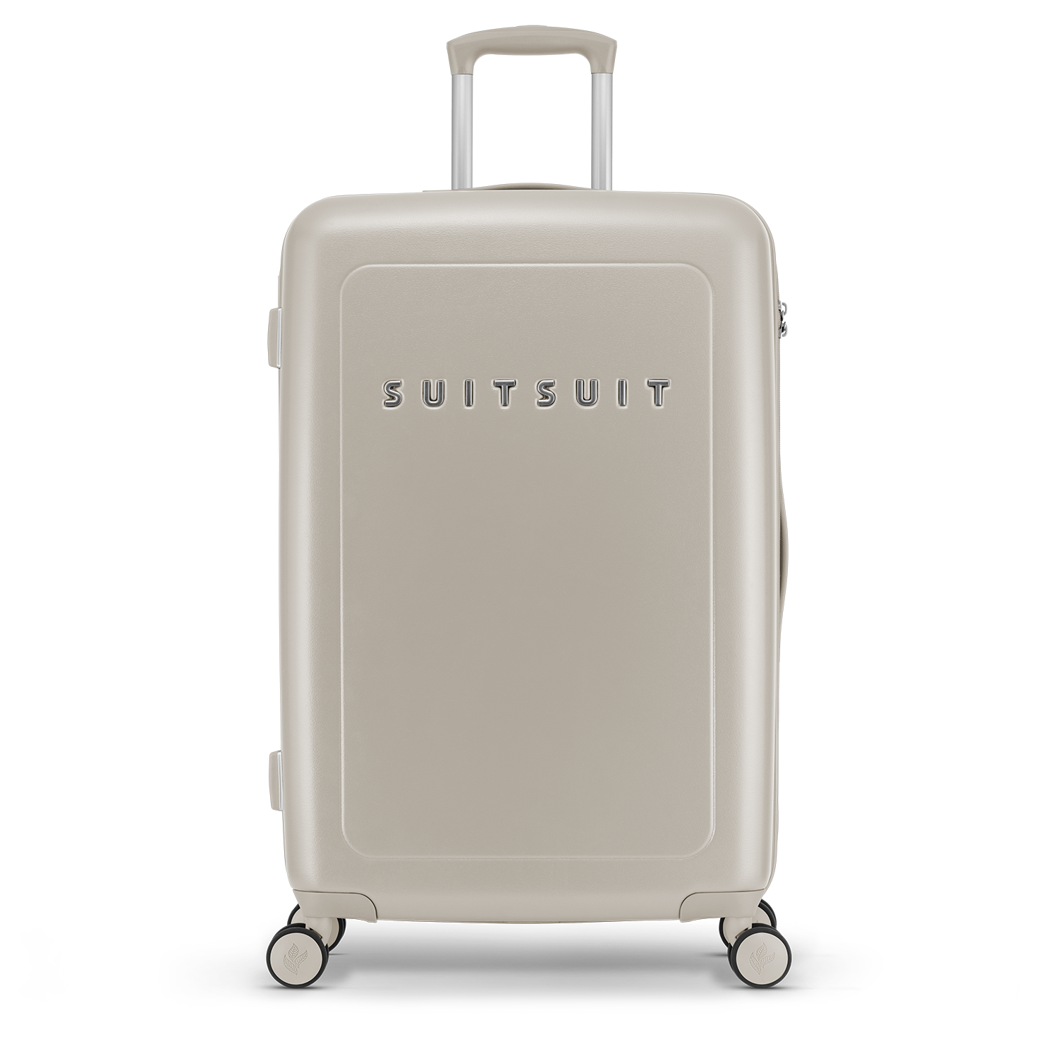 - This set contains the Bleached Sand check-in suitcase (76 CM) and the Macadamia packing cube set (76 CM).