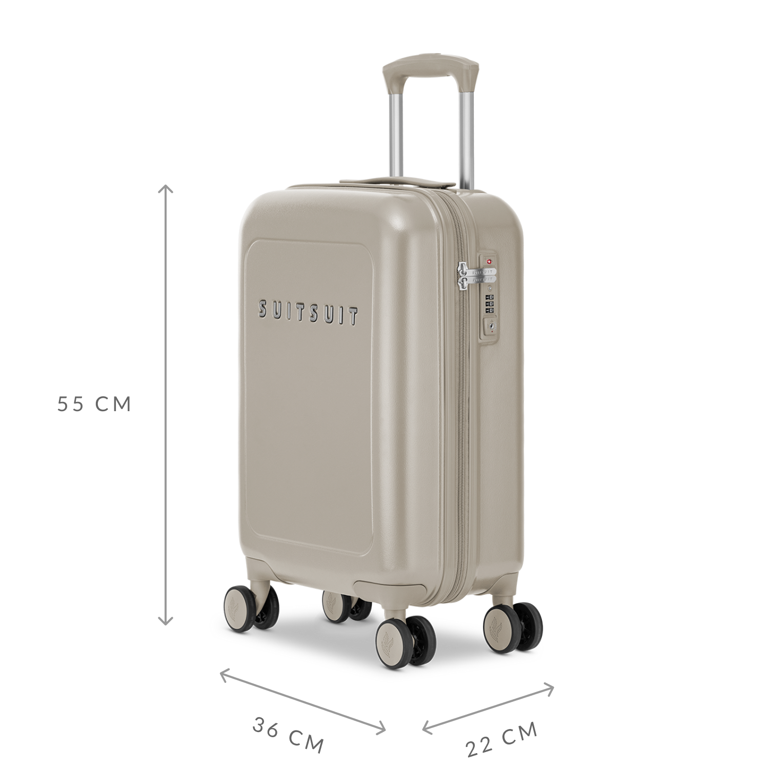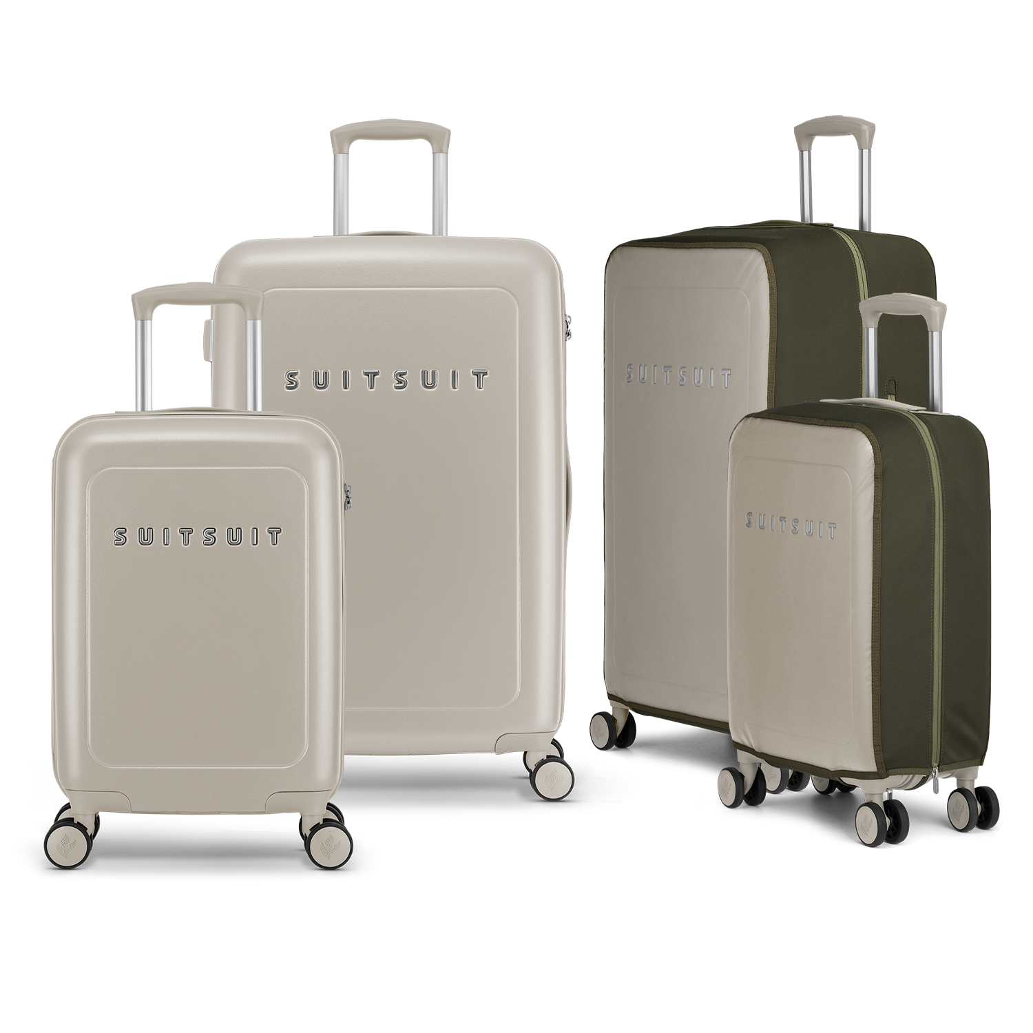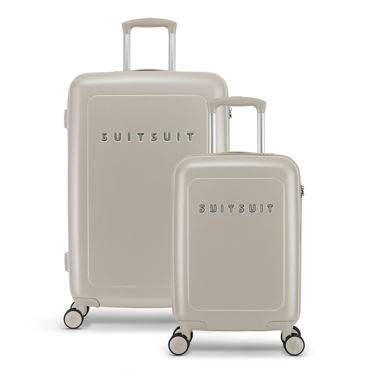 - This set includes the Bleached Sand check-in suitcase (76 CM), the Bleached Sand carry-on suitcase (55 CM), and two Four Leaf protection covers (55 CM and 76 CM).