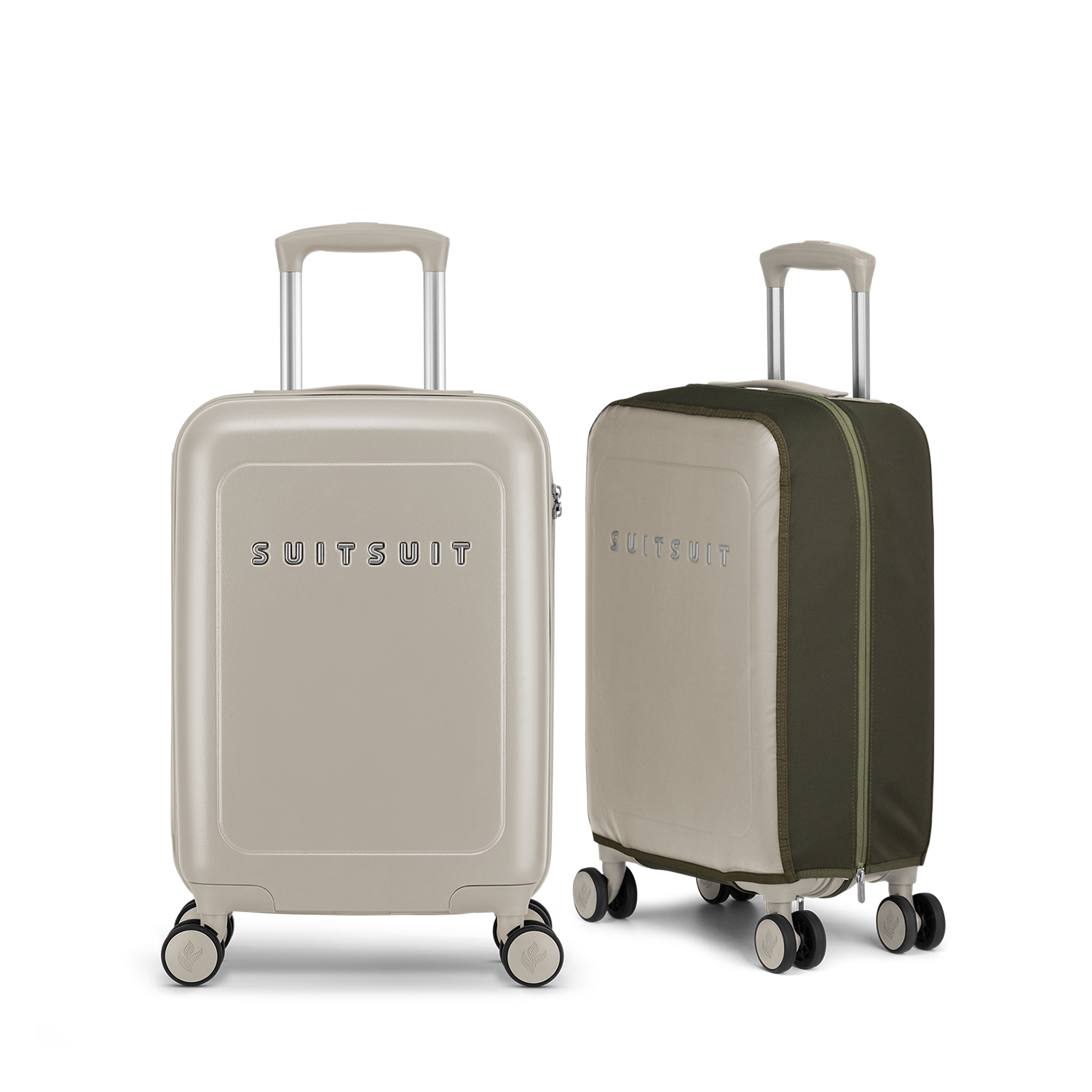 - This set contains the Bleached Sand carry-on suitcase (55 CM) and the Four Leaf protection cover (55 CM).