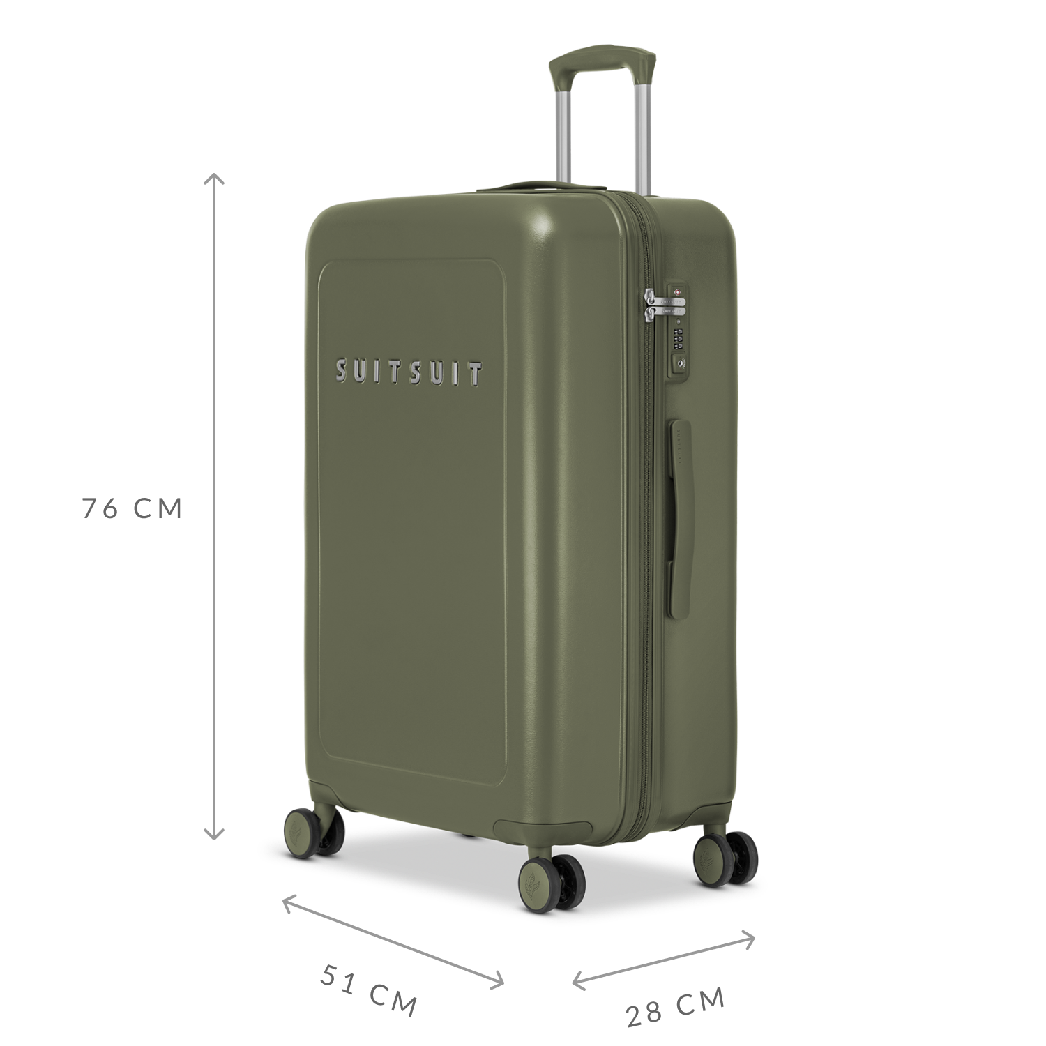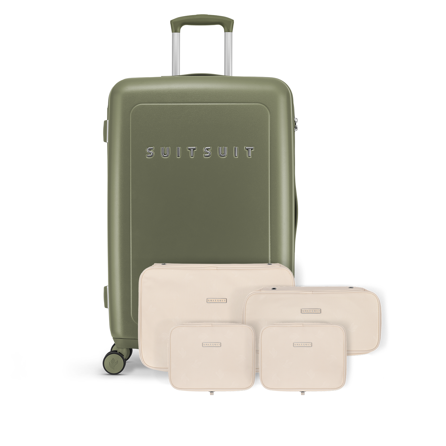 - This set contains the Dark Olive check-in suitcase (76 CM) and the Macadamia packing cube set (76 CM).