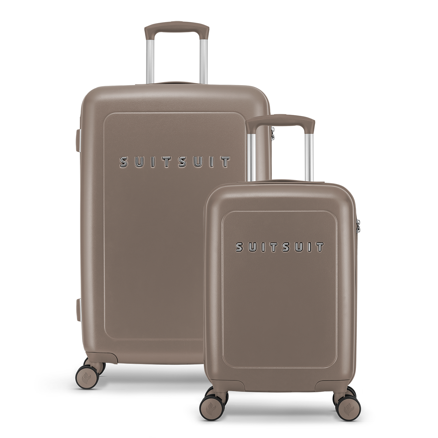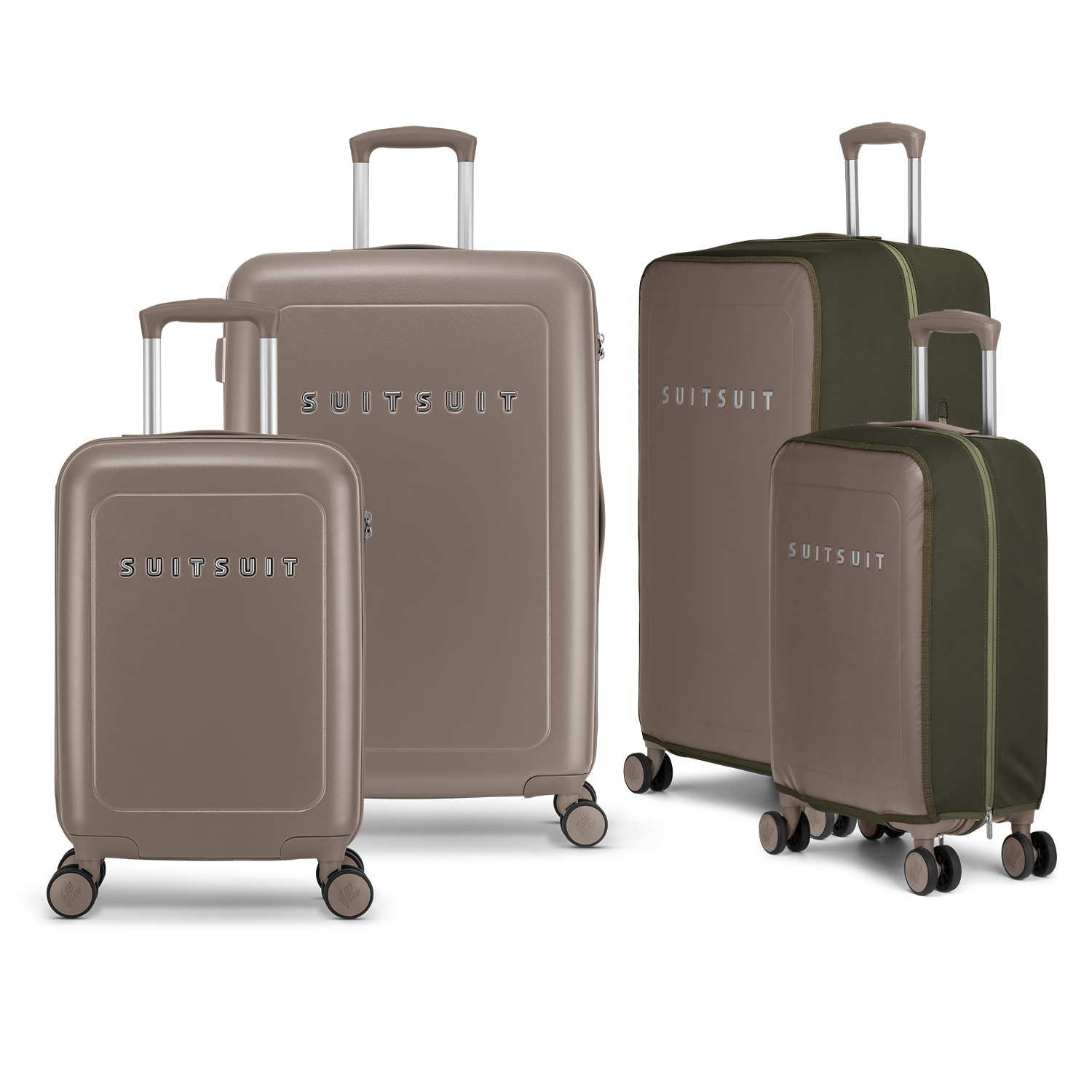 - This set includes the Plaza Taupe check-in suitcase (76 CM), the Plaza Taupe carry-on suitcase (55 CM), and two Four Leaf protection covers (55 CM and 76 CM).